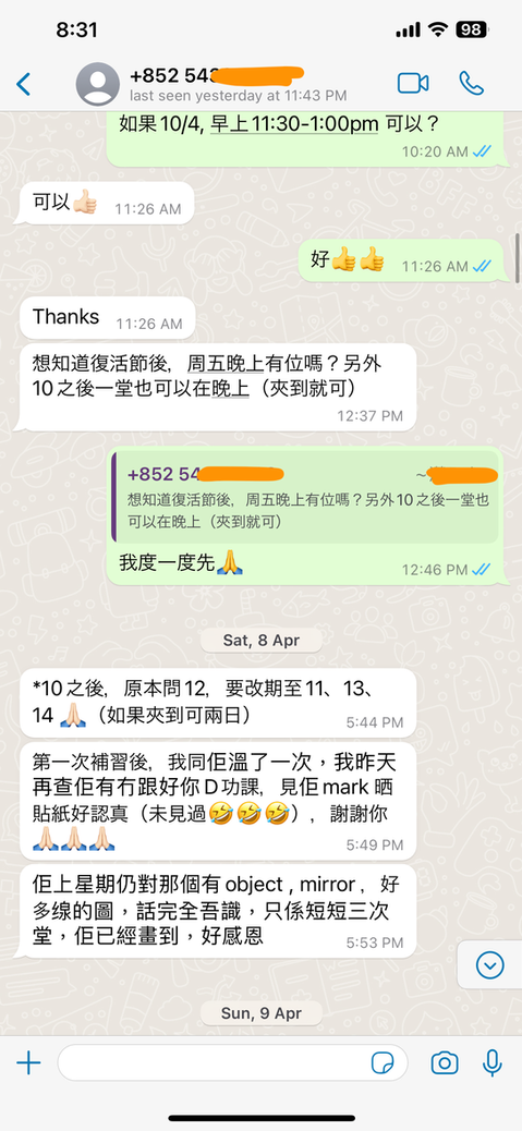 歡迎學生隨時Whatsapp/WeChat 問問題